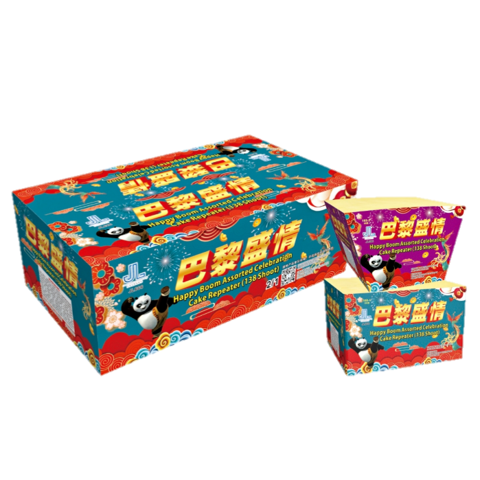 Happy Boom Assorted Celebration Cake Repeater (9”168 Shoot) Pyro 2in1